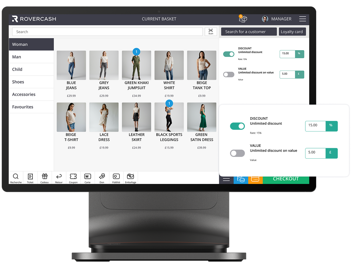 Your RoverCash cash register software natively integrates loyalty programme management, allowing you to create and customise your own loyalty programme.